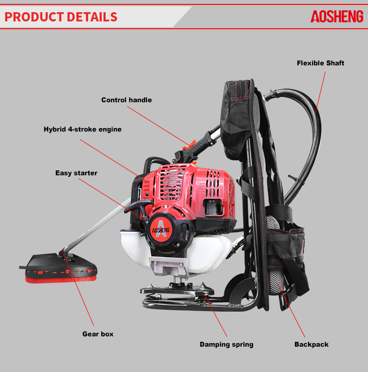 Enjin 4 lejang berprestasi tinggi, anjakan ialah 38CC. Penggunaan profesional di kawasan terbiar terbuka Saiz tiub 26mm * 1.5mm, aci fleksibel kekuatan. Lebar pemotongan ialah 420mm Masa h...