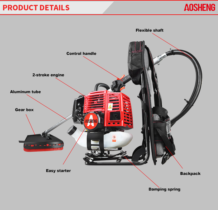 Enjin 4 lejang berprestasi tinggi, anjakan ialah 38CC. Penggunaan profesional di kawasan terbiar terbuka Saiz tiub 26mm * 1.5mm, aci fleksibel kekuatan. Lebar pemotongan ialah 420mm Masa h...