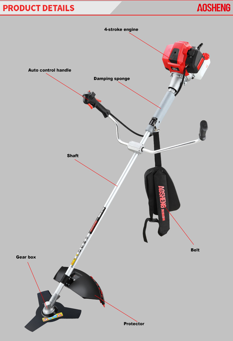 Enjin 4 lejang berprestasi tinggi, anjakan ialah 38CC. Penggunaan profesional di kawasan terbiar terbuka Saiz tiub 26mm * 1.5mm, aci fleksibel kekuatan. Lebar pemotongan ialah 420mm Masa h...